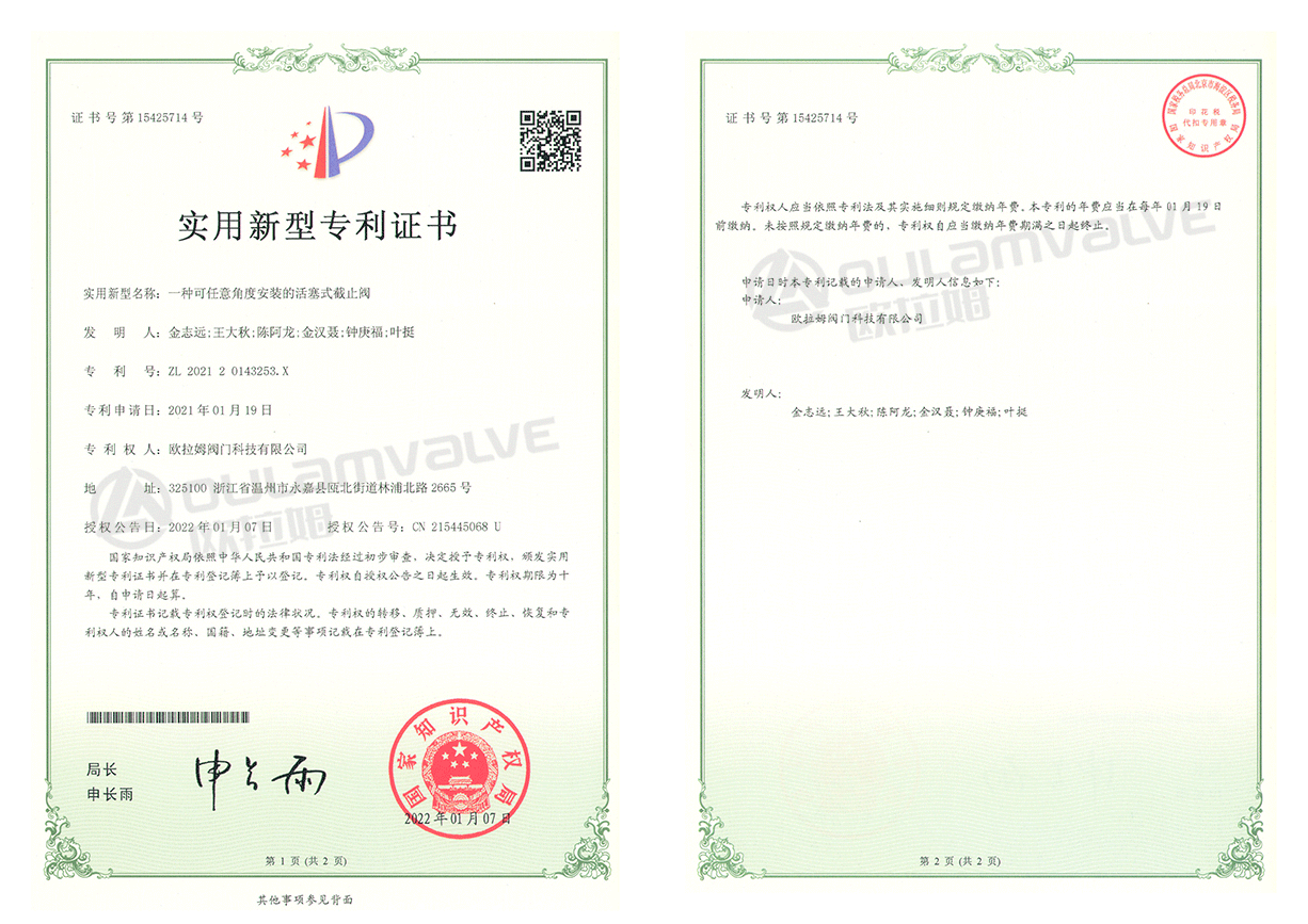 本實(shí)用新型公開了一種可任意角度安裝的活塞式截止閥,包括閥體,閥體內(nèi)設(shè)置有閥座、閥瓣,閥體的頂端上通過螺栓固定安裝有閥蓋,螺栓上螺紋套有螺母,閥蓋的上方焊接有填料函,填料函上螺栓固定有填料壓蓋,閥瓣的外圓十分完整,并且通過圓柱銷固定連接有閥桿,閥桿的上端固定連接有手柄,手柄豎直向上貫穿填料壓蓋,并且末端上安裝有手輪。圓柱銷將閥桿與閥瓣固定死,改變了以往閥瓣與閥桿為活塞式連接的方式,實(shí)現(xiàn)了完全固定,能夠避免截止閥在使用過程中,閥瓣和閥桿脫落;同時(shí)閥瓣外圓十分完整,增加了閥瓣的強(qiáng)度,提高了閥瓣的使用壽命。