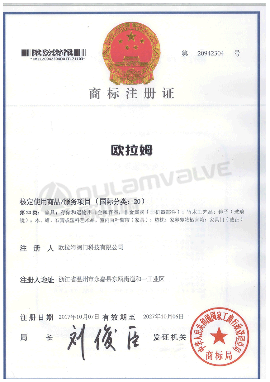 “歐拉姆”商標注冊證