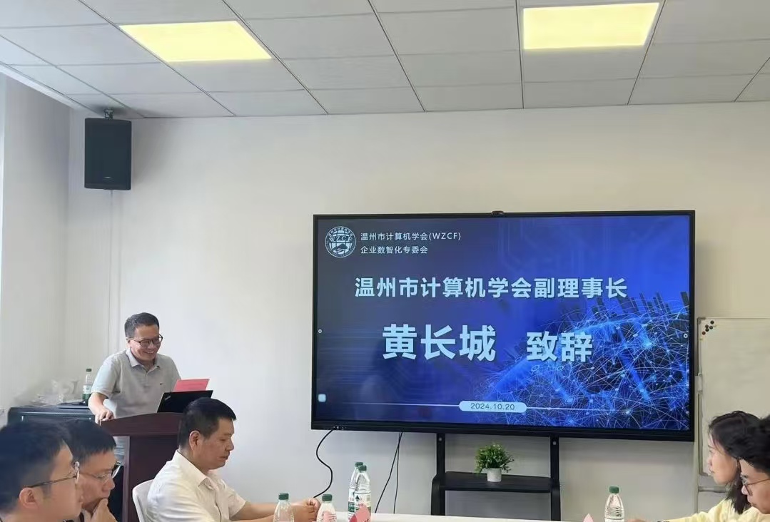 會上,黃長城發表致辭。他強調,專委會的成立是為了匯聚行業智慧,搭建交流平臺,推動溫州市企業數智化進程。專委會將遵循“創新、協作、共享、共贏”的理念,專注于技術創新與應用推廣,加強人才培養與引進,為企業提供全面、多層次的支持與服務。