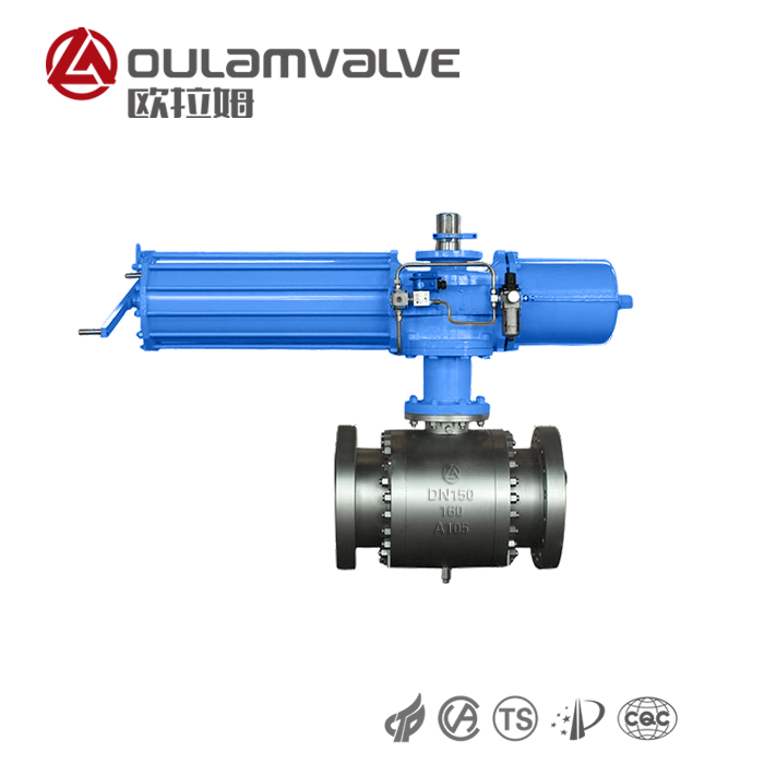 氣動球閥是所有閥類中流體阻力最小的一種,以壓縮空氣為動力,通過活塞齒條,齒輪的機械傳動閥桿,以角行程輸出的扭矩轉(zhuǎn)動球體 0~90°,就能快速完成啟閉動作或調(diào)節(jié)動作,操作方便快捷。球芯通道平整光滑,不易沉積介質(zhì),可以進行管線式通球。
