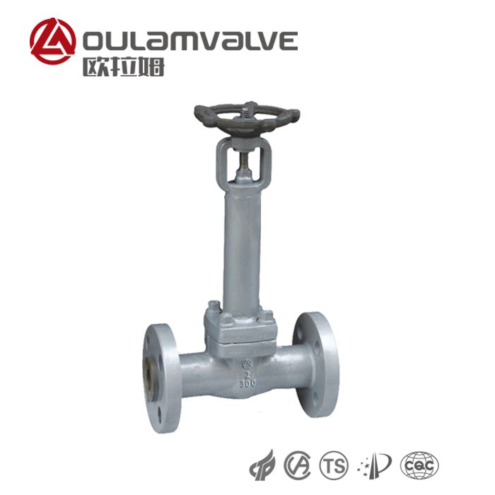 低溫閘閥在成品油輸送管線上一般是作為運輸LNG液化天然氣等介質。因LNG液化天然氣等介質需在低溫下儲存,其執照過程是將汽田所產出的天然氣進化處理,經過一系列超低溫液化,在利用管道進行輸送。且LNG液化天然氣的輸送管線長埋于地下,包括在運輸途中所使用到的低溫閘閥(DZ41Y)也會埋于地下進行作用,其低溫閘閥的閥桿進行加長后方便于作業員進行啟閉操作。